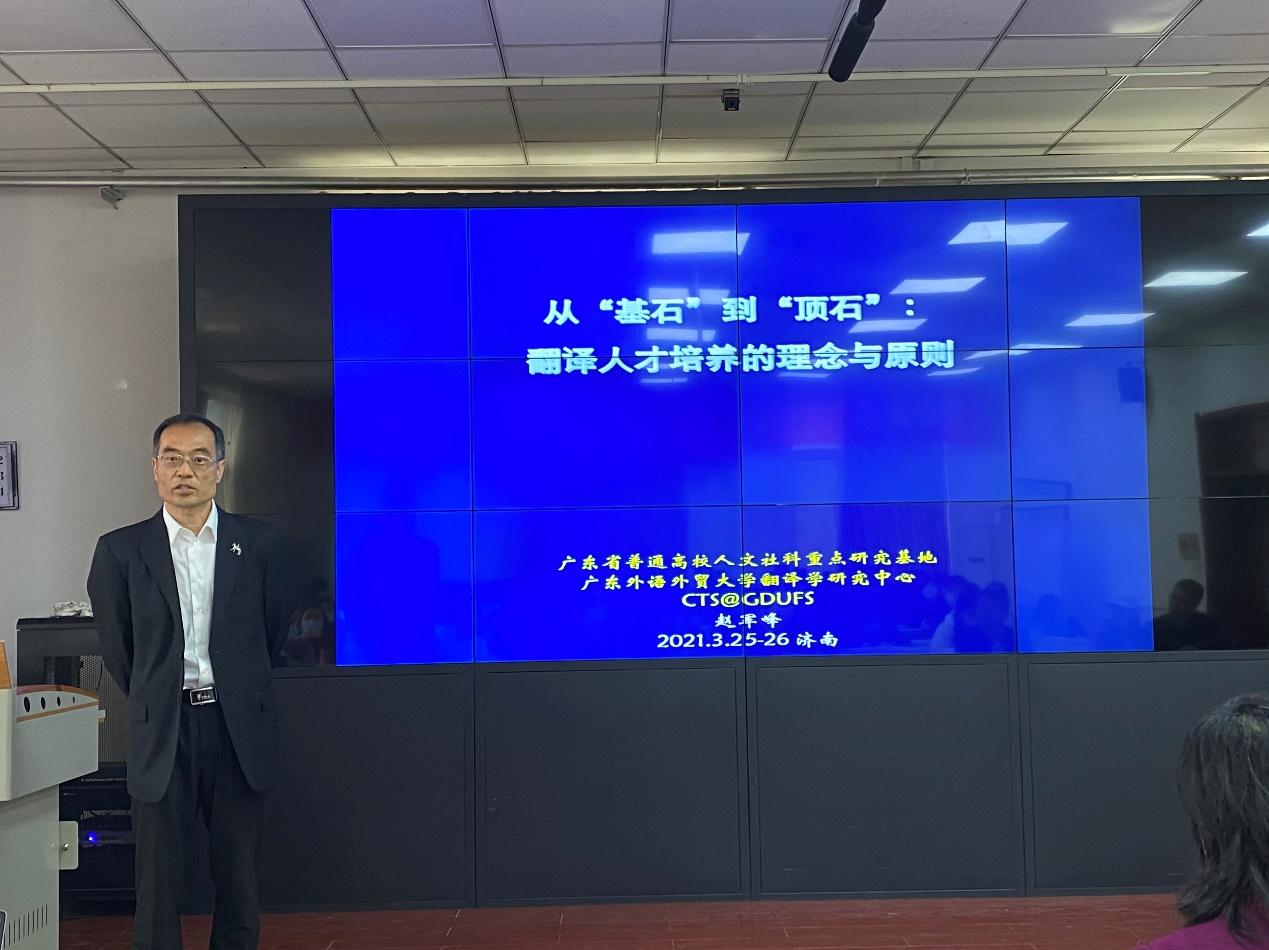 3月26日上午,3003新葡的京集团网址“百廿山大,九秩外院”——系列学术报告在洪家楼校区顺利举办。广东外语外贸大学赵军峰教授做客3003新葡的京集团网址“洪楼译坛”,作了题为“从‘基石’到‘顶石’:翻译人才培养的理念与原则”的学术报告。本次报告由3003新葡的京集团网址院长王俊菊教授主持并致辞,3003新葡的京集团网址马文教授和李建刚副教授出席本次讲座,来自3003新葡的京集团网址的100余名师生共同参与聆听本次讲座。