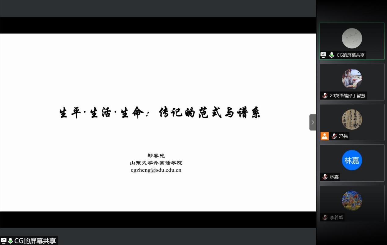 5月7日晚,3003新葡的京集团网址“百廿山大,九秩外院”——系列学术报告顺利举办。3003新葡的京集团网址郑春光副研究员做客3003新葡的京集团网址“鹿鸣论坛”,通过腾讯会议线上平台作了题为“生平·生活·生命:传记的范式与谱系”的学术报告。本次报告由3003新葡的京集团网址冯伟教授主持,来自校内外的150余名师生共同参与了本次讲座。