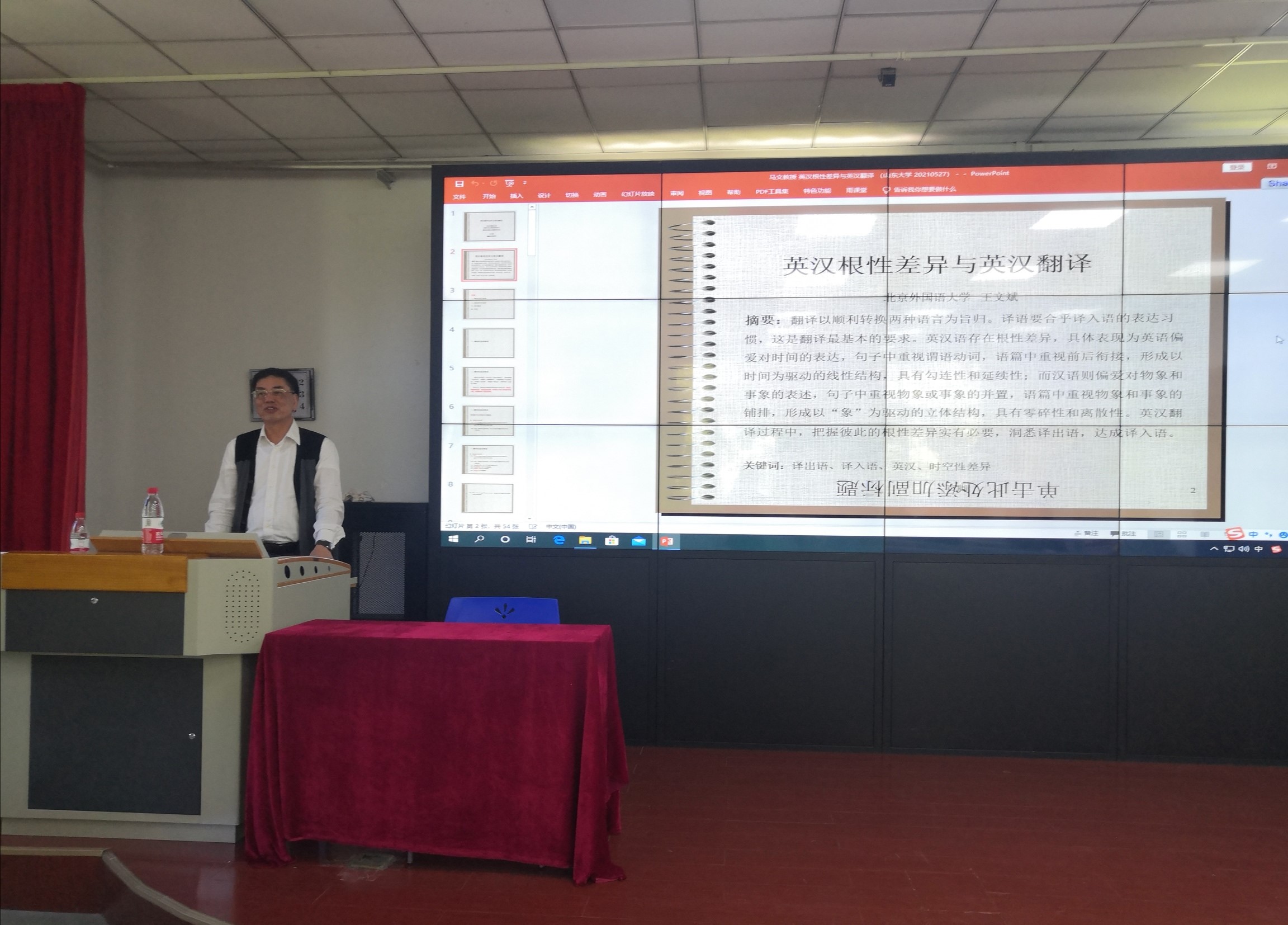5月28日上午,3003新葡的京集团网址“百廿山大,九秩外院”系列学术报告在洪家楼校区顺利举办。北京外国语大学王文斌教授做客3003新葡的京集团网址“知新沙龙”,作了题为“英汉根性差异与英汉翻译”的学术报告。本次报告由3003新葡的京集团网址副院长马文教授主持,众多外院师生共同参与本次讲座。