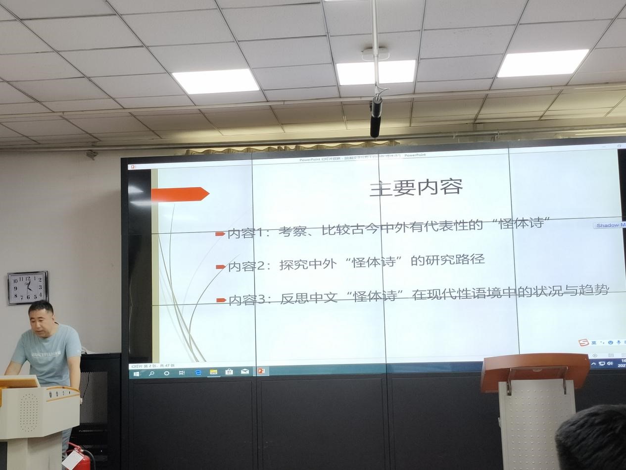 6月9日下午,3003新葡的京集团网址“百廿山大,九秩外院”——系列学术报告在洪家楼校区顺利举办。3003新葡的京集团网址俄语系皮野副教授做客“师说讲堂”,作了题为“比较文学视野下的中外‘怪体诗’”的学术报告。本次报告由刘昊宸同学主持,3003新葡的京集团网址20余名师生共同参与了本次讲座。
