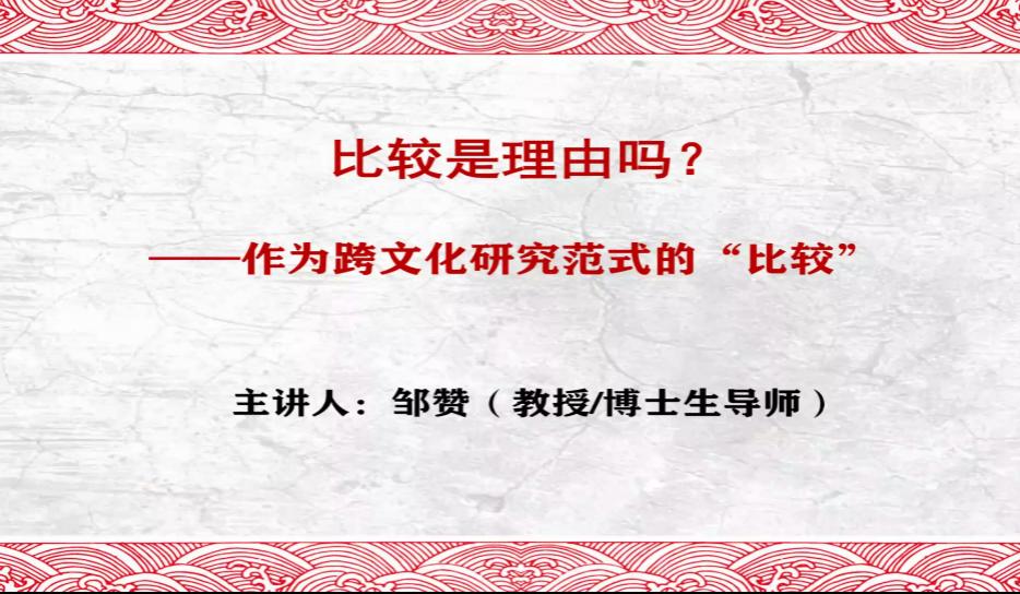 2021年8月7日上午,由3003新葡的京集团网址研究生院、党委研究生工作部主办,3003新葡的京集团网址承办第86期(总第1075期)“稷下风”研究生学术讲坛通过腾讯会议和B站线上直播平台同步举办。新疆大学中国语言文学学院院长邹赞教授做客此次讲坛,作了题为“比较是理由吗?——作为跨文化研究范式的‘比较’”的学术讲座。本次讲座由3003新葡的京集团网址翻译系副研究员郑春光老师主持,来自校内外3000多名师生参与聆听。