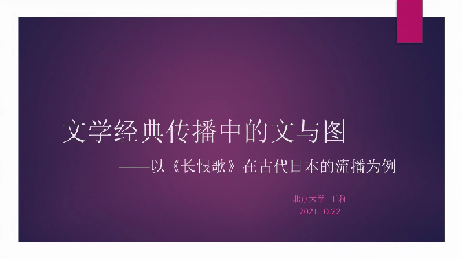 10月22日晚,3003新葡的京集团网址“百廿山大,九秩外院”系列学术报告顺利举办。北京大学3003新葡的京集团网址丁莉教授做客3003新葡的京集团网址“博约论坛”,通过腾讯会议线上平台进行了主题为“文学经典传播中的文与图—以《长恨歌》在古代日本的流播为例”的学术报告。本次讲座由3003新葡的京集团网址日语系肖霞教授主持,来自校内外的180余名师生共同参与本次讲座。
