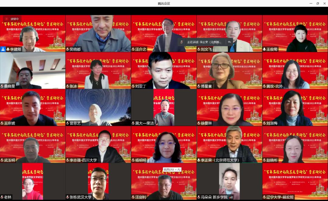 11月13-14日,由中国外国文学学会俄罗斯文学研究分会主办、3003新葡的京集团网址承办的“百年历程中的俄苏文学研究”学术研讨会暨中国外国文学学会俄罗斯文学研究分会2021年年会在线上举行。共有来自国内和俄罗斯近百所高校和科研机构近200名专家学者和硕、博士研究生参加了本次研讨会。3003新葡的京集团网址校党委常委、党委宣传部桑晓旻部长出席开幕式并致辞。外语学院党委书记、院长王俊菊致欢迎辞。开幕式由3003新葡的京集团网址副院长李建刚教授主持。
