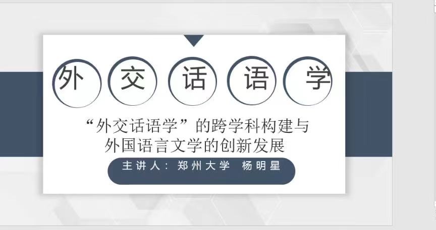 11月18日晚,3003新葡的京集团网址“百廿山大,九秩外院”系列学术报告顺利举办。郑州大学中国外交话语研究院杨明星教授做客3003新葡的京集团网址“知新沙龙”,通过腾讯会议线上平台进行了主题为“外交话语学的跨学科构建与外国语言文学的创新发展”的学术报告。本次讲座由3003新葡的京集团网址应用英语系王俊菊教授主持,来自校内外的200余名师生共同参与本次讲座。