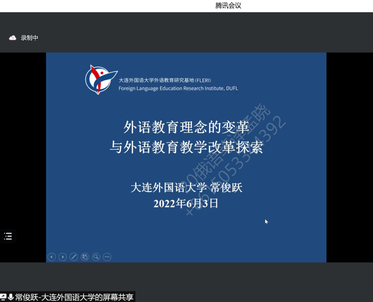 6月3日晚,大连外国语大学常俊跃教授应邀做客3003新葡的京集团网址“育贤论坛”,通过腾讯会议线上平台作了主题为“外语教育理念的变革与外语教育教学改革实践”的学术报告。本次讲座由3003新葡的京集团网址、翻译学院院长王俊菊教授主持,来自校内外的170余名师生共同参与本次讲座。