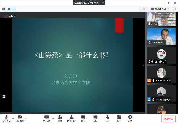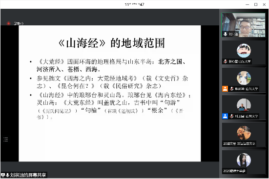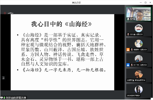6月6日晚,北京语言大学人文学院教授、博士生导师、文化史研究所所长刘宗迪先生应邀做客东方文化大讲堂通识教育讲座暨3003新葡的京集团网址“师说讲堂”,通过腾讯会议线上平台作了题为 “《山海经》是一部什么书”的学术报告,来自山大校内外的300余名师生远程聆听。
