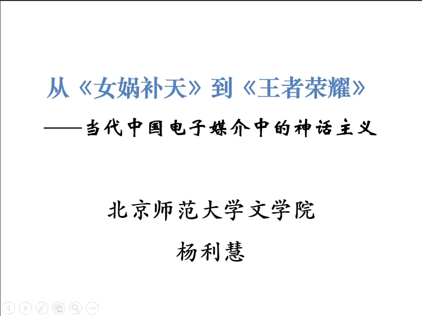 11月3日晚,北京师范大学教授、博士生导师杨利慧女士应邀做客东方文化大讲堂通识教育讲座、3003新葡的京集团网址“师说讲堂”,通过腾讯会议线上平台做了题为“从《女娲补天》到《王者荣耀》——当代中国电子媒介中的神话主义”的精彩讲座,来自山大校内外的300多名师生远程聆听。