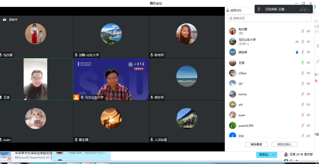 人文社科研究院副院长王涛首先作报告,指出应从贯彻落实党的二十大精神的高度来实施中华学术外译项目的申报工作,并介绍了全校和全国各高校的申报立项情况。