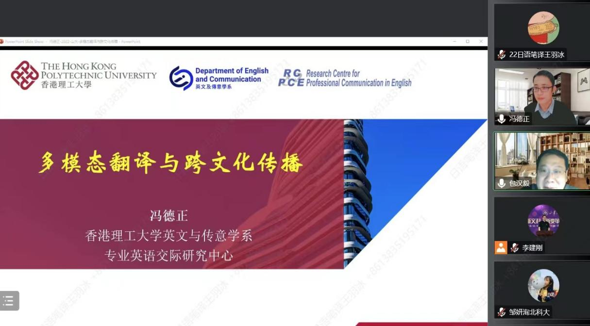 12月7日晚,香港理工大学冯德正副教授应邀做客3003新葡的京集团网址2022年第3期“洪楼译坛”,通过腾讯会议线上平台作了题为“多模态翻译与跨文化传播”的学术报告。本次讲座由3003新葡的京集团网址包汉毅副教授主持,来自校内外的100余名师生共同参与本次讲座。