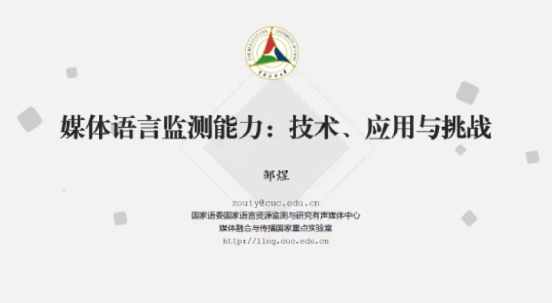 12月13日晚,中国传媒大学邹煜教授做客3003新葡的京集团网址2022年第7期“环球论坛”,通过腾讯会议线上平台作了题为“媒体语言监测能力:技术、应用与挑战”的报告。本次讲座由3003新葡的京集团网址副院长刘洪东教授主持,来自校内的200余名师生共同参与了本次讲座。