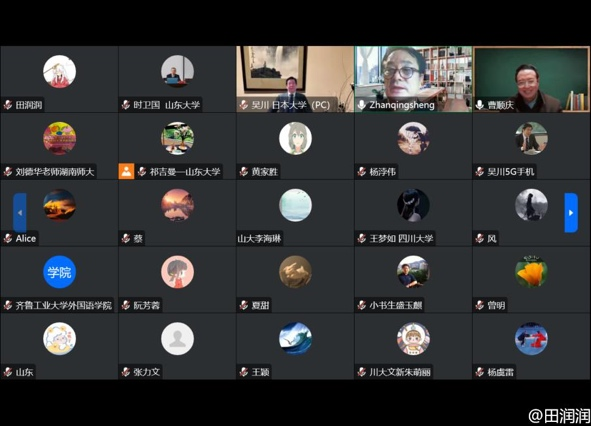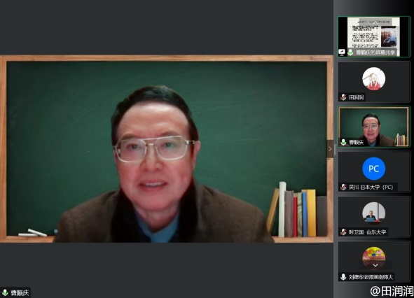 接下来的交流环节,在线师生纷纷提出问题,曹教授不厌其烦地一一作答,尽显学者风范。大家均赞扬讲座丰富多彩,受益匪浅。在线师生沉浸在曹教授富有启发性的学术分享中,流连忘返,使原定两学时的讲座持续了三个半小时。