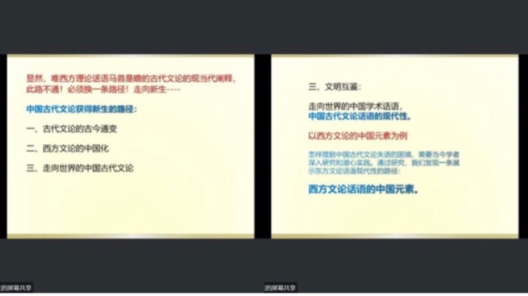 针对中国古代文论摆脱西方话语之控重获新生这一难题,曹教授指出了三条路径:一是古代文论的古今通变,二是西方文论的中国化;三是古代文论必须走向世界。并对三条路径分别做了详尽的阐释。