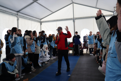 下午,大家回到基地继续开展活动。下午的第一个项目是“教练说”,只有在指令前听到“教练说”三个字才算有效指令,这一项目旨在调节学生状态,集中精力,为开展接下来的活动做准备。这一项目打破了大家的惯性思维,将学生们的注意力高度集中,给大家上了一堂轻松但又深刻的一课。最后一个项目是众志成城,全体成员站成一个圆圈,双脚平行,脚尖顶着前边队友的脚跟,双手抓住前面隔一个人的衣服,当教练下达指令时全体成员坐到后面学生的膝盖上,构建起一个坚固的城墙。大家按照规则要求围成内外两个圆圈,伴随着激昂的音乐,学生们坚持了整整十五分钟,远超原定目标,突破了自己的心理预期。在这一过程中,大家咬牙坚持,即使双腿不停地颤抖也没有放弃。通过这个项目,学生们更加理解了集体的意义,集体是由个人组成的,个人的懈怠会给整个团队造成无法估量的影响,同时该项目也增强了大家的团队责任感和团队荣誉感。