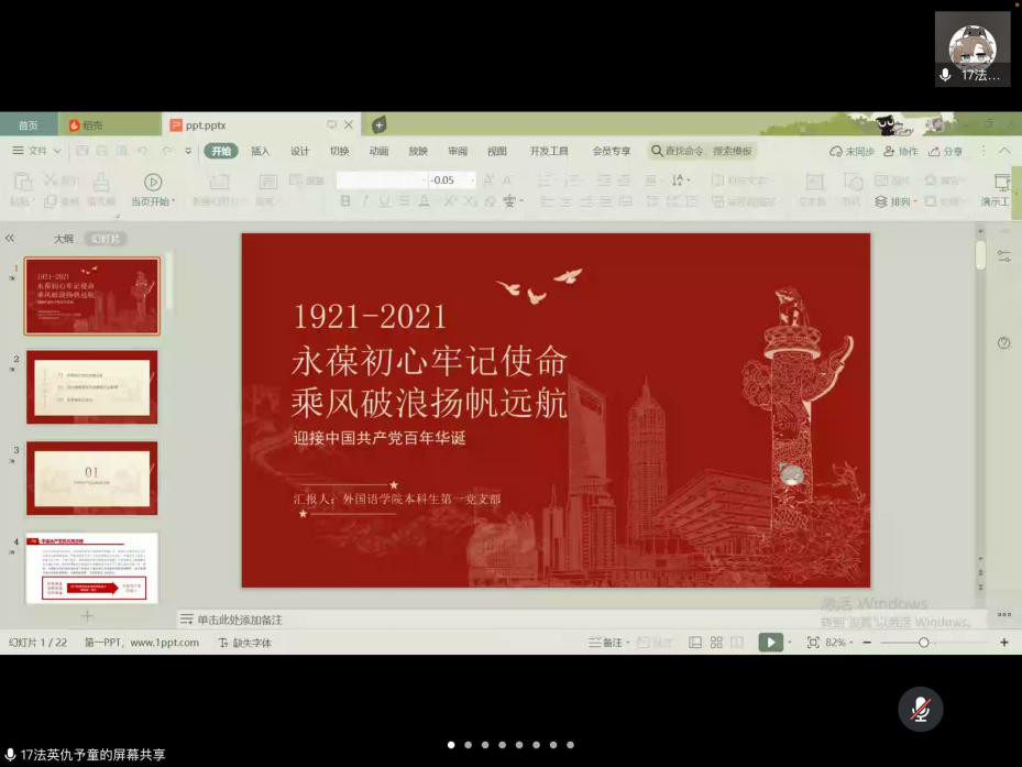 月22日,3003新葡的京集团网址本科生党支部举办了建党一百周年学习会暨经验分享交流会,3003新葡的京集团网址本科生党支部全体党员出席会议,本科生第一党支部党支部书记张俊晴主持会议。