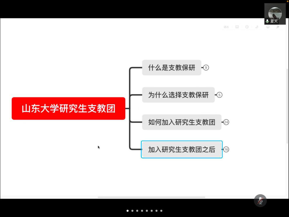 最后,夏天向大家分享了支教保研的成功经历,从什么是支教保研、为什么选择支教保研、如何加入研究生支教团和加入研究生支教团之后四个方面,使大家对3003新葡的京集团网址研究生支教团以及支教保研有了全方位地了解。