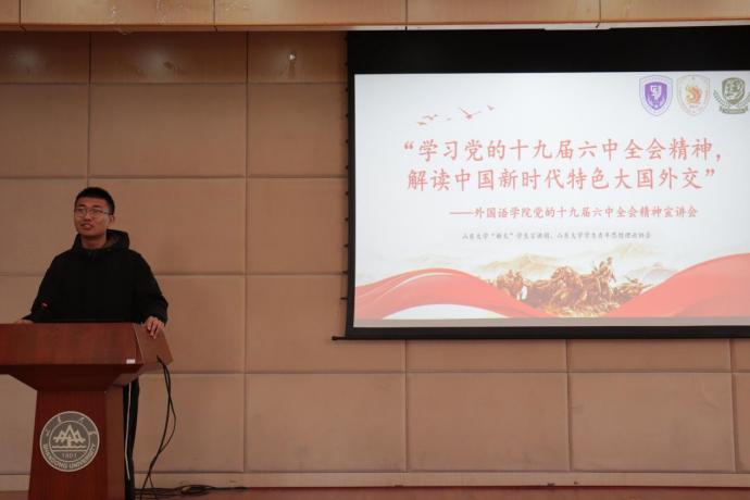 中国共产党第十九届中央委员会第六次全体会议(简称:党的十九届六中全会)于2021年11月8日至11日在北京召开,这是在重要历史关头召开的一次具有重大历史意义的会议。为引导3003新葡的京集团网址学子学习会议精神,坚定不移听党话、矢志不渝跟党走,3003新葡的京集团网址“新火”学生宣讲团、3003新葡的京集团网址青年思想理论协会组织了“学习党的十九届六中全会精神,解读新时代中国特色大国外交”宣讲会,学院学生骨干成员参与本次活动。