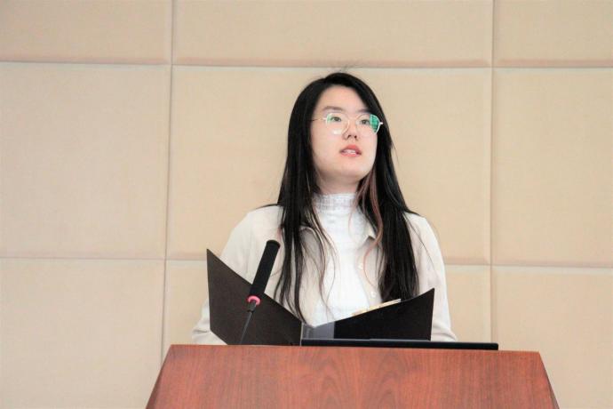 青思协成员陈羽裳从中俄社会主义政党发展视角出发,结合邻国俄国的历史和现实讲解了“三个需要”和“两个确立”以及中俄外交新形势,逻辑清晰而有力地为大家阐述了中国共产党坚强领导的重要性。