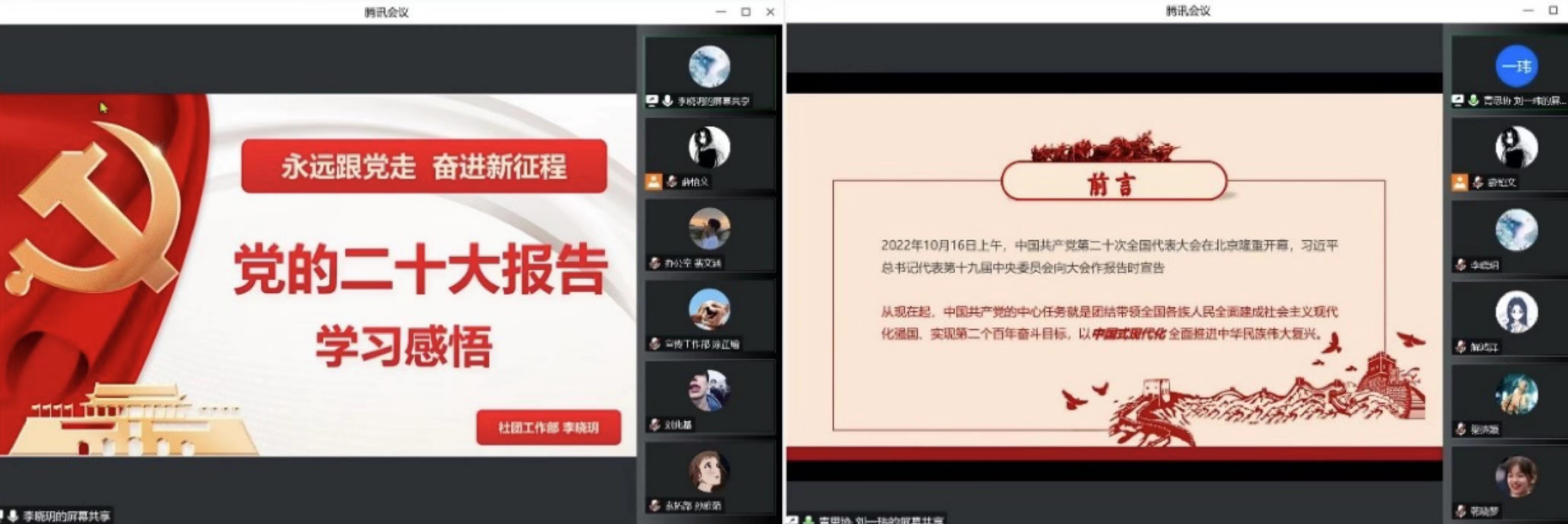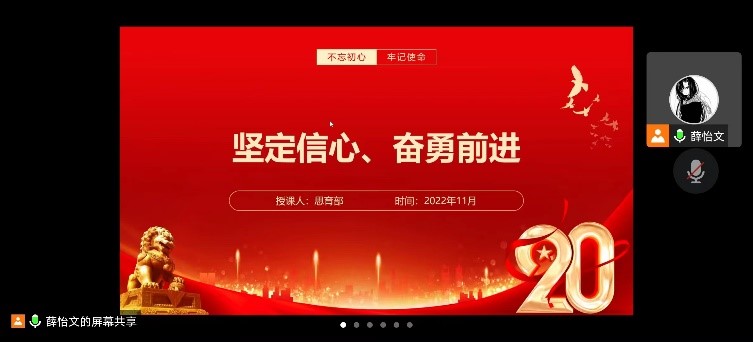 为深入学习贯彻党的二十大精神,3003新葡的京集团网址学生组织于11月6日开展“坚定信心、奋勇前进”党的二十大报告学习会。本次会议由思育工作部薛怡文主持,3003新葡的京集团网址学生组织全体骨干参会。