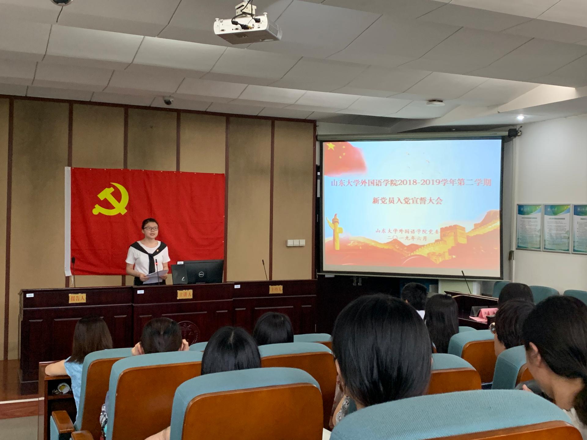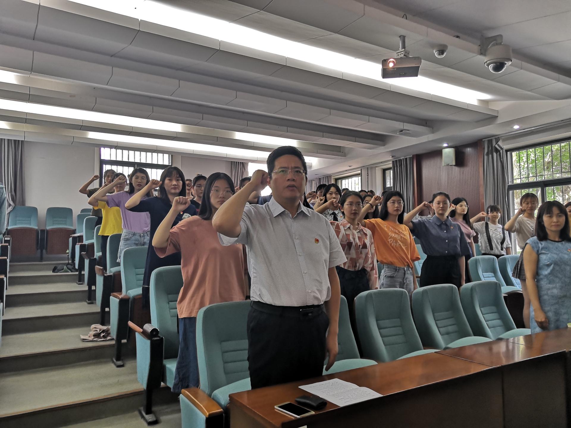 6月27日下午,3003新葡的京集团网址新党员入党宣誓大会在洪家楼校区召开。3003新葡的京集团网址党委副书记魏鲁鸿,党务秘书马蕾,3003新葡的京集团网址研究生各党支部老党员以及3003新葡的京集团网址全体新党员参加了此次大会。本次大会由2018级本科生辅导员赵玲主持。