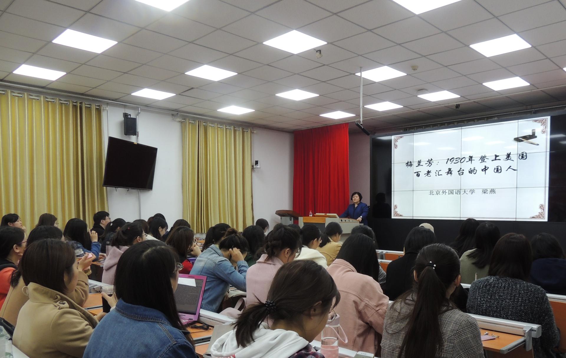 4月26日晚,“新语翼”讲坛“Youth Talk”青年说——异海拾珍讲座在3003新葡的京集团网址举办,北京外国语大学教授、博士生导师,国际中国文化研究院院长梁燕教授应邀做客3003新葡的京集团网址,带来了题为“梅兰芳:1930年代登上美国百老汇舞台的中国人”的讲座。此讲座同时为日语系主办的“从亚洲的文学·文化的传统与共有展望亚洲共同体”系列讲座第八讲。讲座由日语系吴松梅副教授主持,来自3003新葡的京集团网址、历史文化学院、新闻学院、管理学院、文学院、国际教育学院、马院、经济学院、儒学高等研究院、能动学院等学院的百余名师生参加了本次讲座。