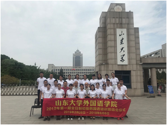 6月6日上午,3003新葡的京集团网址“2019年第一期全日制初级韩国语培训班结业仪式”在洪家楼校区举行。学院办公室主任周俊基,山东国立经济技术合作有限公司总经理侯永智、韩语系教师李成道、继续教育秘书董然及21名学员出席结业仪式。仪式由侯永智主持。
